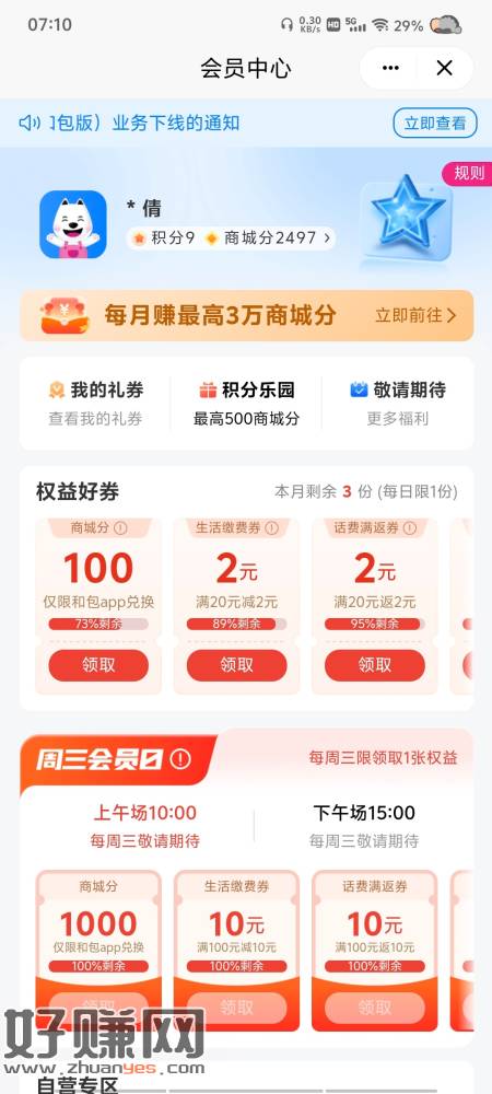 中国移动APP 探索 打开积分