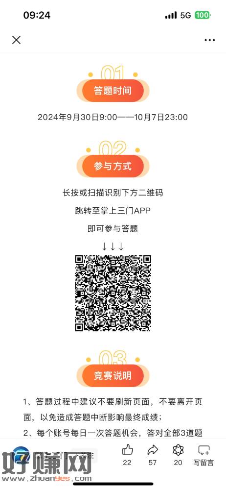 下载:掌上三门 扫码跳转答题,3题全对