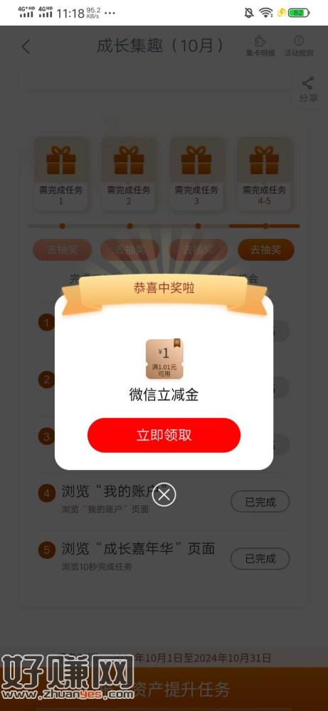 工行app-任务中心-享活动【成长集趣10月】-2个浏览任务抽