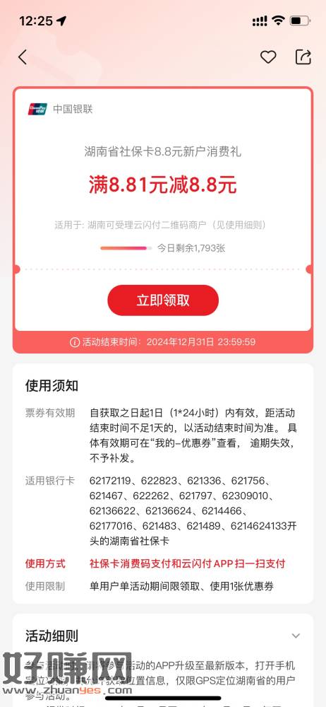 云闪付湖南8.8大毛