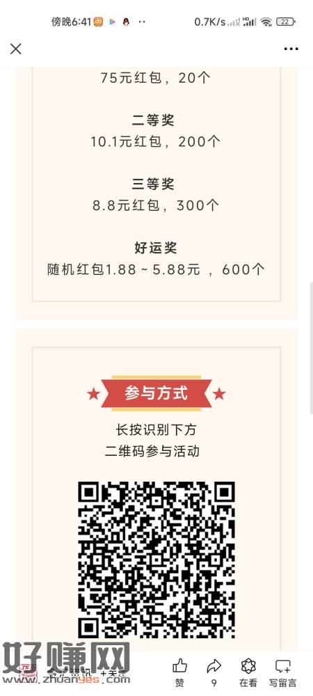 微信扫码抽奖,有大包,中了不秒到。