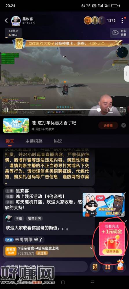 斗鱼 随便点个直播间右下角有个观看+1 应该是每天1毛可以签
