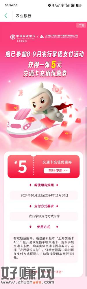 上海交通卡 应该都送了张农行5充值券 10-5 再加浦发5.8 一个月10.8润