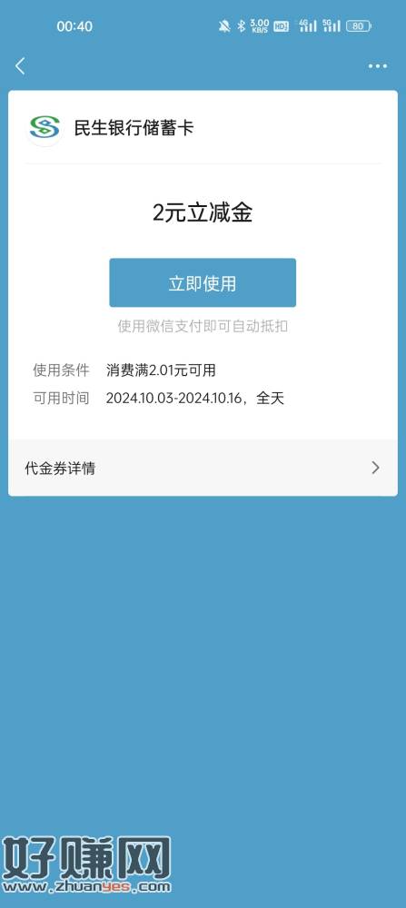 民生运动微信小程序,我的权益 电子券抽奖,刚中2张2元