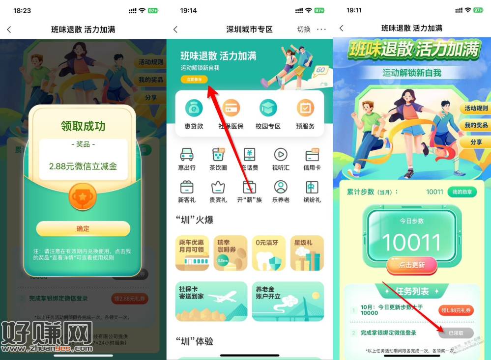 如图,农行app…城市专区…限深圳,顶上,刷1万步还有一个小话费券,应该可以叠加数币话费优惠