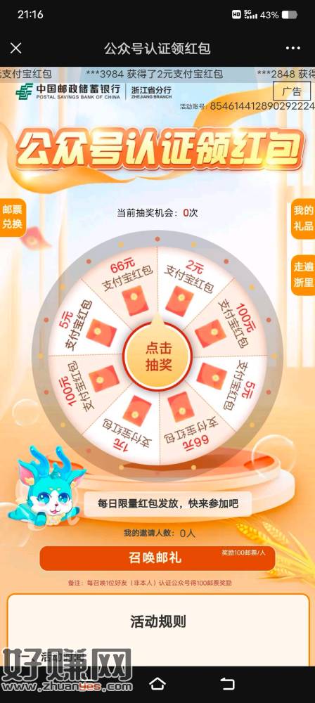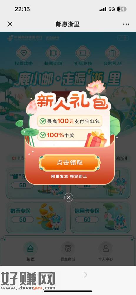 邮储1立减金,关注,推文,没有推文的点一下邮惠浙里,或者个人