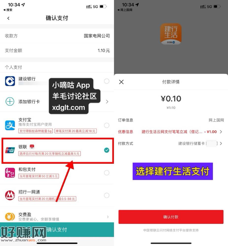 2、选择云闪付使用“建行生活”支付立减1亓,可反复减4次共4亓