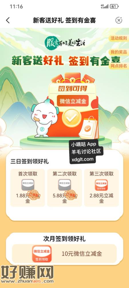 老哥们 老妹们,娄底农行真搞笑啊,月签到第二天页面显示5.88,实际到账的是2.88