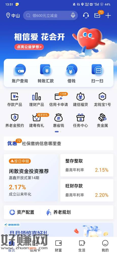2: 建行APP主页→任务中心→简单做任务拿积分抽话费、立减金、E卡