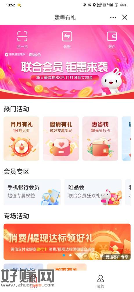 入口:1: 建行APP首页→建粤有礼→月月有礼1分抽+旁边的惠省钱抽折扣买立减金
