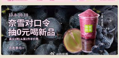 奈雪口令:怕加糖就喝奈雪黑葡萄