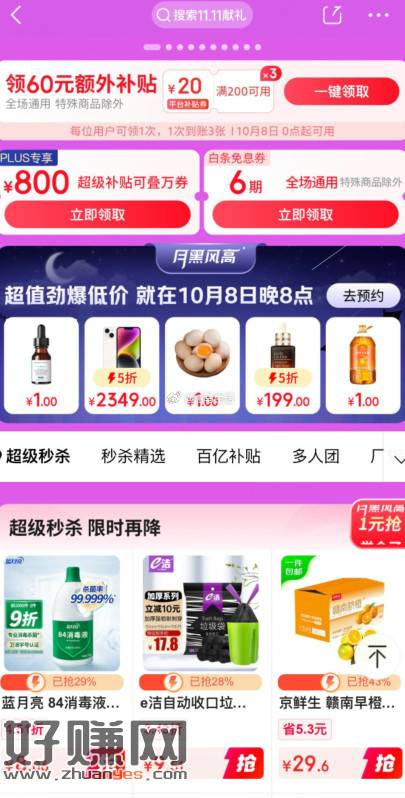 【京东领取3张200减20亓补贴券】京东打开活动->下拉领3张200减20亓券,补贴券全场通用,今晚8点还有很多1元商品
