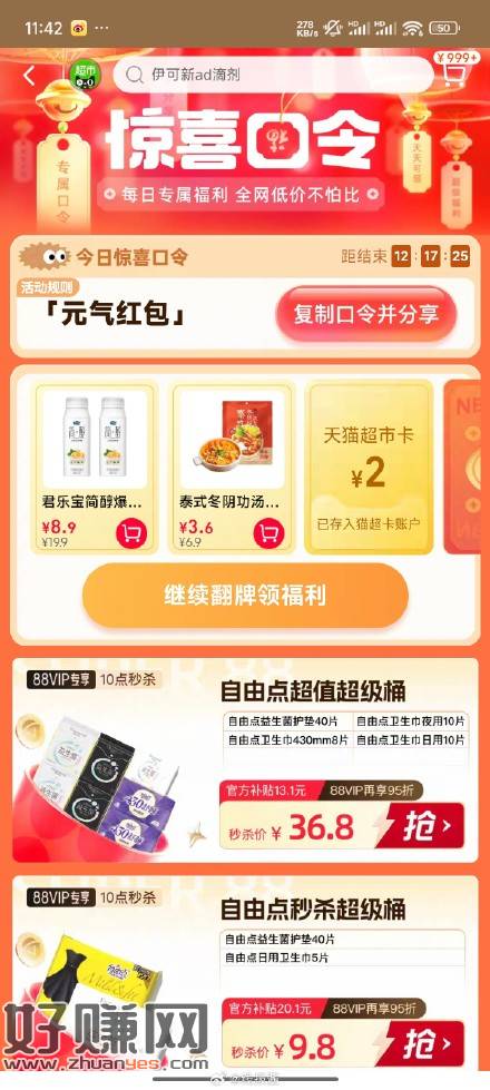 闪购品牌日单单有福利 亲测3.06元撸零食