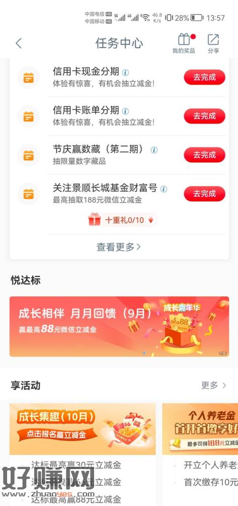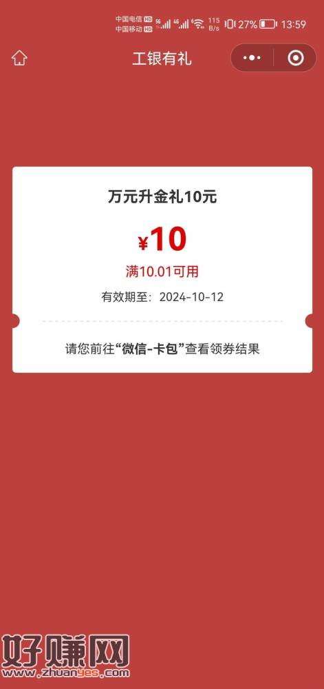 工行刚中10元 成长相伴 月月回馈9月,可以抽奖了