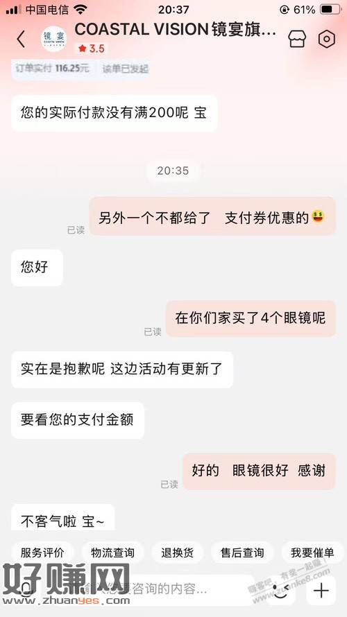 要求实付满200,去年配了2副单价160,今年配了4副单价106。。