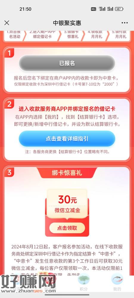 首页中意卡绑定收款商户领30,电子二类卡也可以,卡片照片app内直接截图或者拍照就可以!