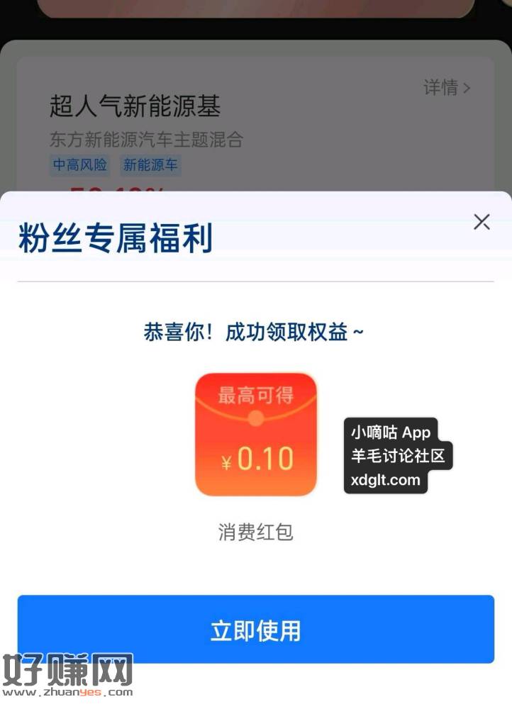 zfb搜 东方基金财富号 粉丝中心 加自选领消费红包