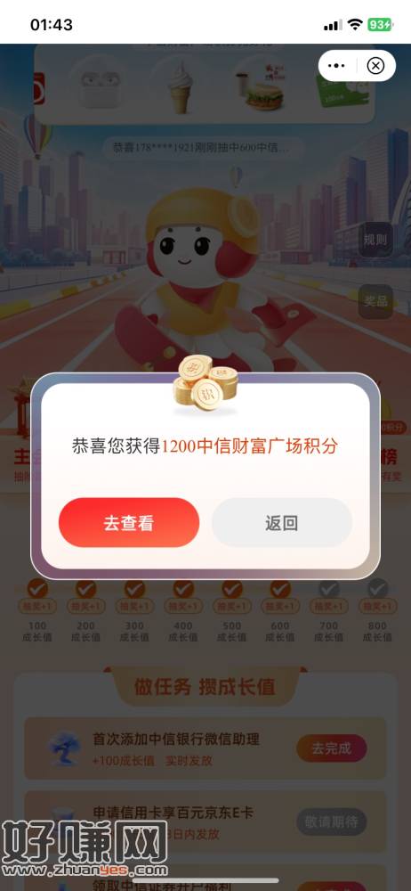 中信财富广场更新,抽8次,有点小水,中了1200,分会场抽完
