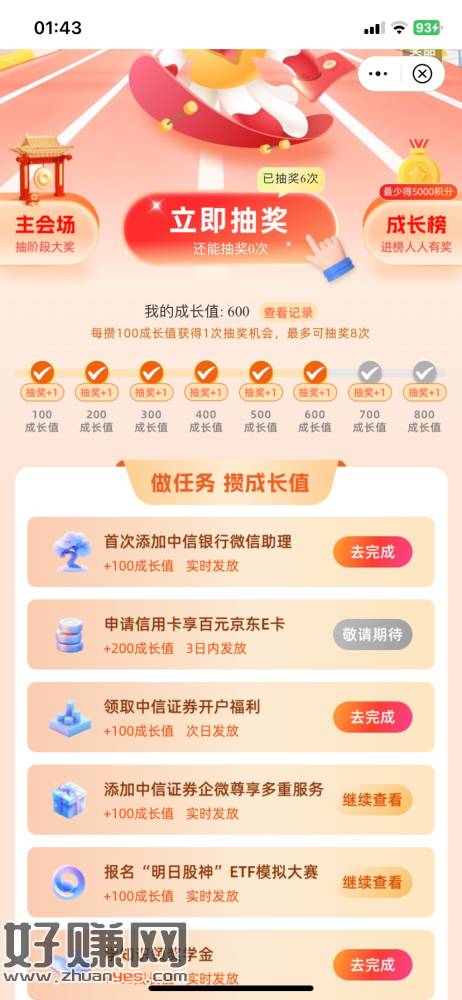 中信财富广场更新,抽8次,有点小水,中了1200,分会场抽完主会场还能抽一次