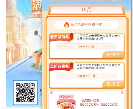 如有建行信用卡,按需报名,微信消费达标得cc豆