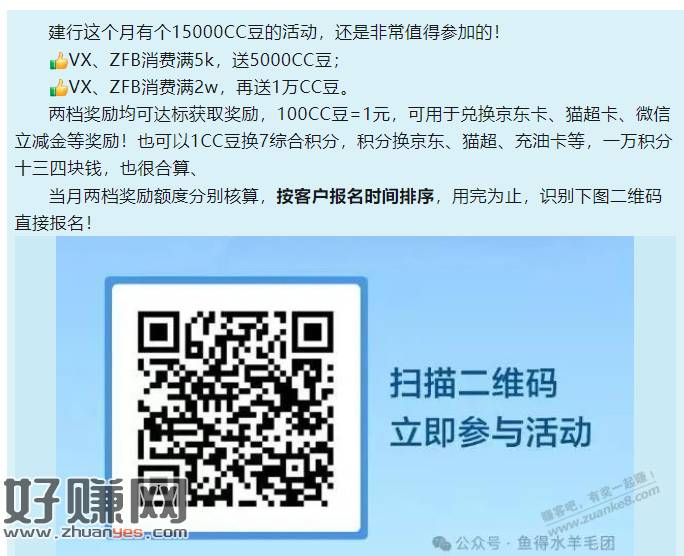 建行CC豆活动,来的有点晚,不过比没有强,报名开始刷吧,注意是微信或者支付宝