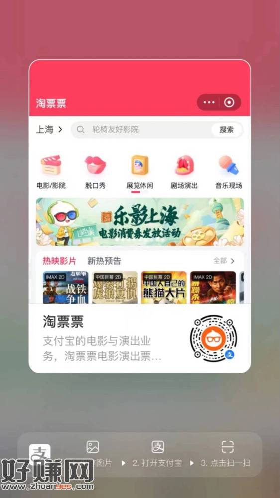 支付宝搜淘票票 左上角改上海 横幅第一个领60-60电影票 速