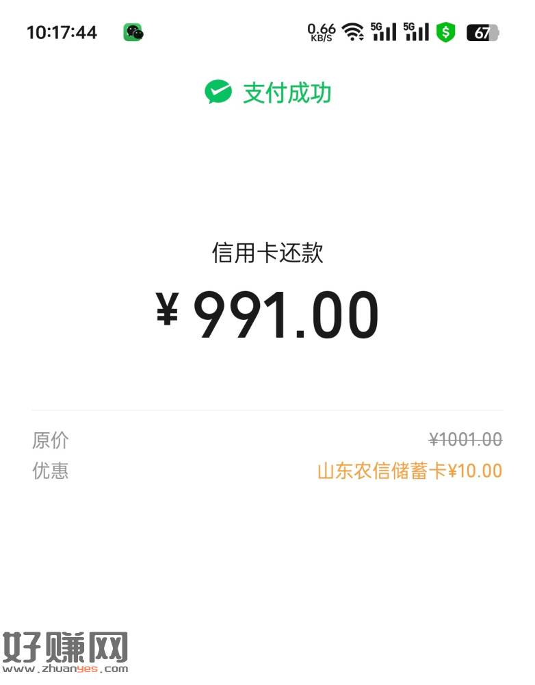 润9*2 每周五山东农商卡还款1000-10 周1次月2次