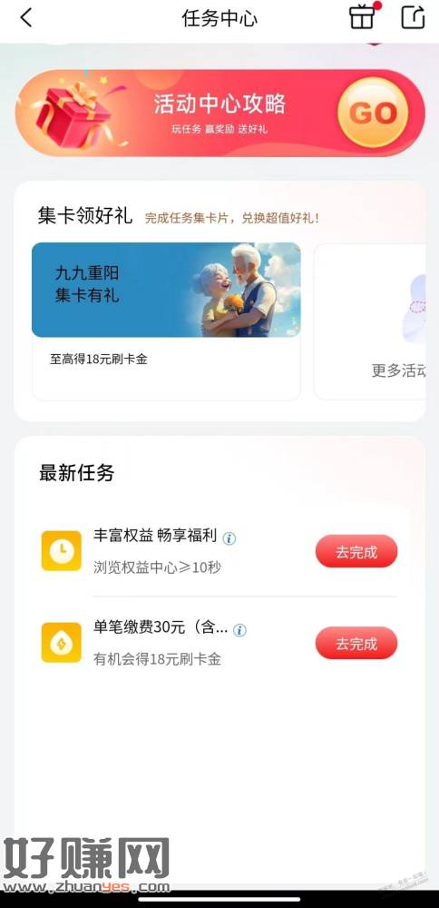 签到0.66,浏览任务0.88,重阳集卡2~5元,缴费任务2~18,爱购星期五5.88。工行刷卡金不按金额,按到期时间抵扣,可以从最低金额往最高金额刷,不限消费渠道