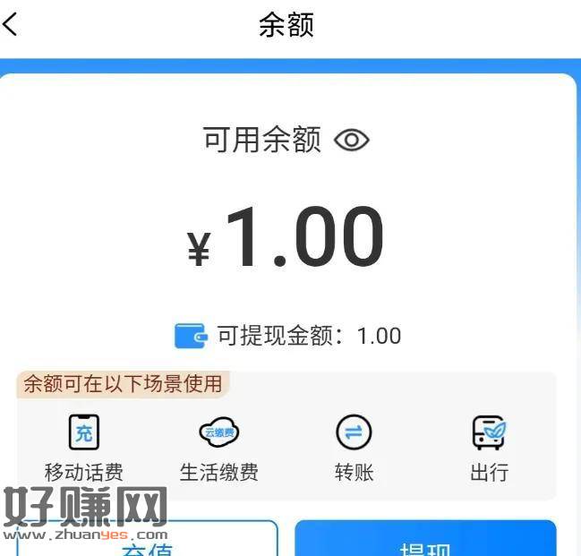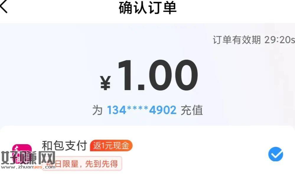 中国移动充值1元话费 和包支付会送1元可以提现