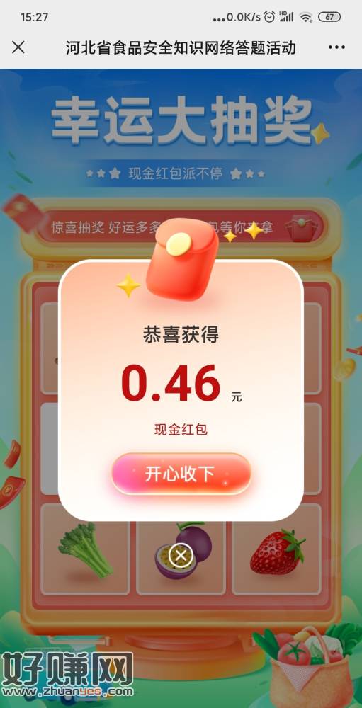 下拉扫码答题全对才能抽包,刚中