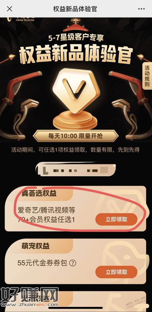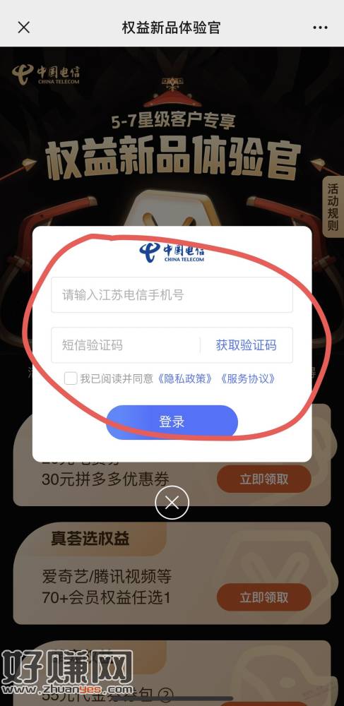 1、江苏电信五星级至七星级上用户(星级可在天翼生活app查看),免费领取一次京东e卡30元或者其他(喜茶、霸王茶姬、爱奇艺等),需开通荟权益权益包体验版(免费开通,一次性的不收费);