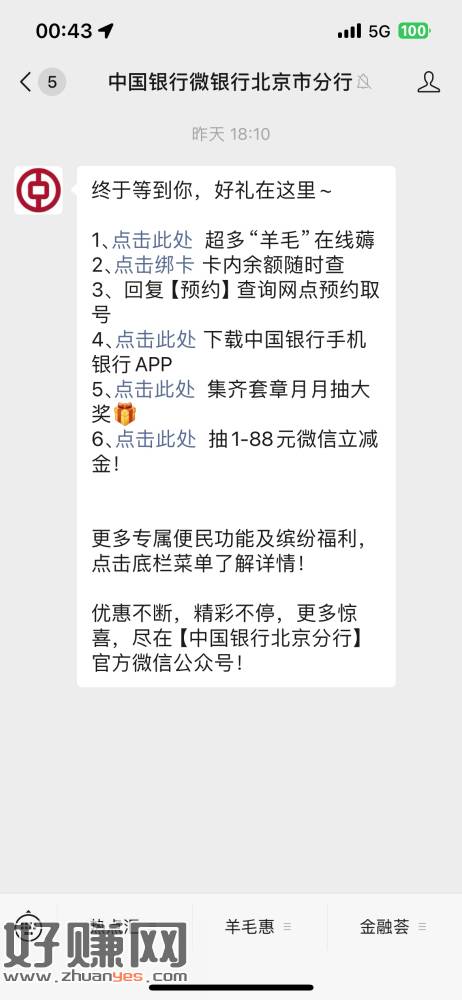 关注公众号:选第六个推文抽奖,每个微信手机号撸一个立减金,通