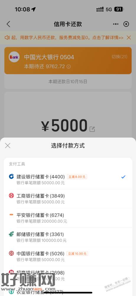 支付宝建行CXK还款5000-8,果来