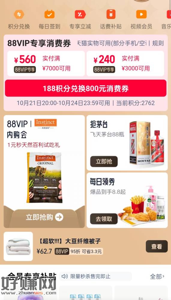 88vip的双11红包来了 3000-240 7000-560 估计还是要套黄金白酒