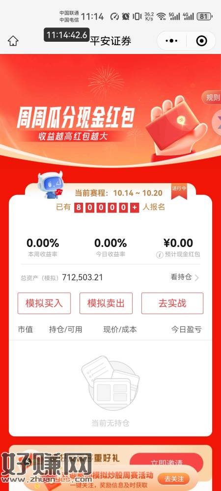 平安证券小程序,上周参加了的看看,没参加过的没有,开张了今天