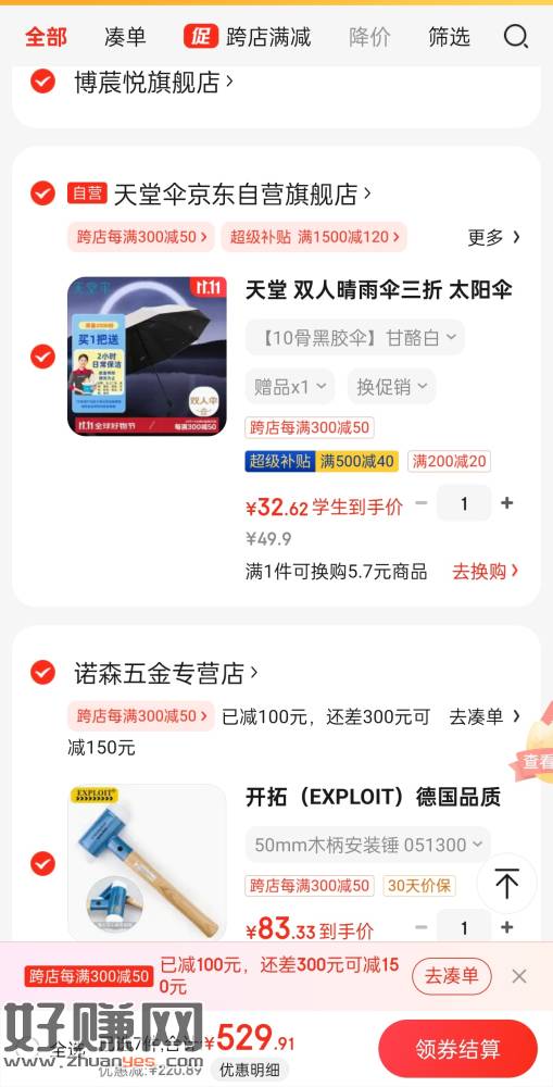 白嫖天堂伞 需要学生会员 凑单32.62送家政券