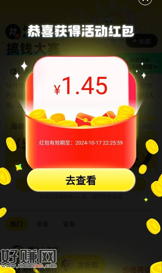 闲鱼海鲜市场搞钱大赛 没领取的可以去了