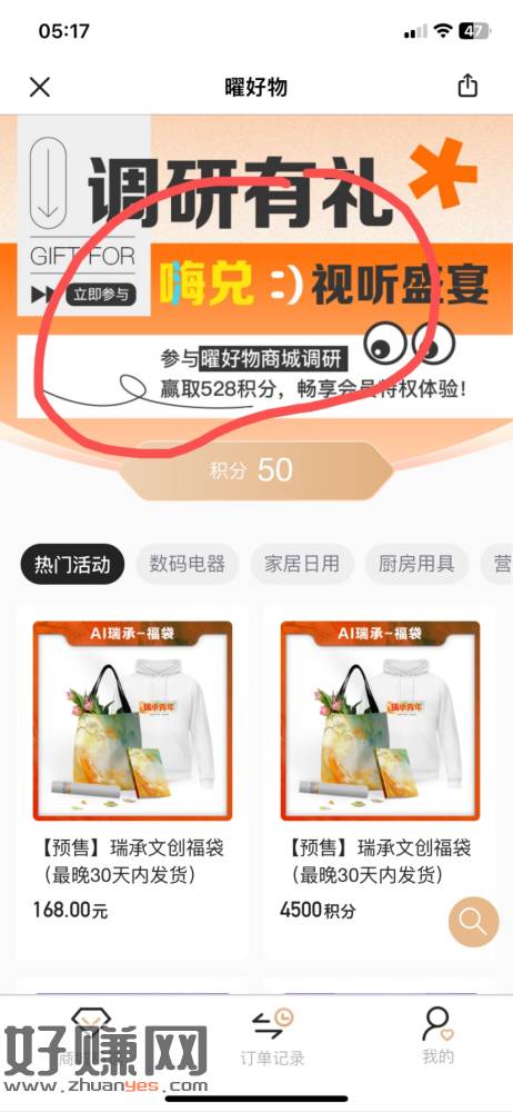 注册实名首页曜好物横幅调研有礼进去填完给528积分周五统一发放,再在卷生活兑换就行。