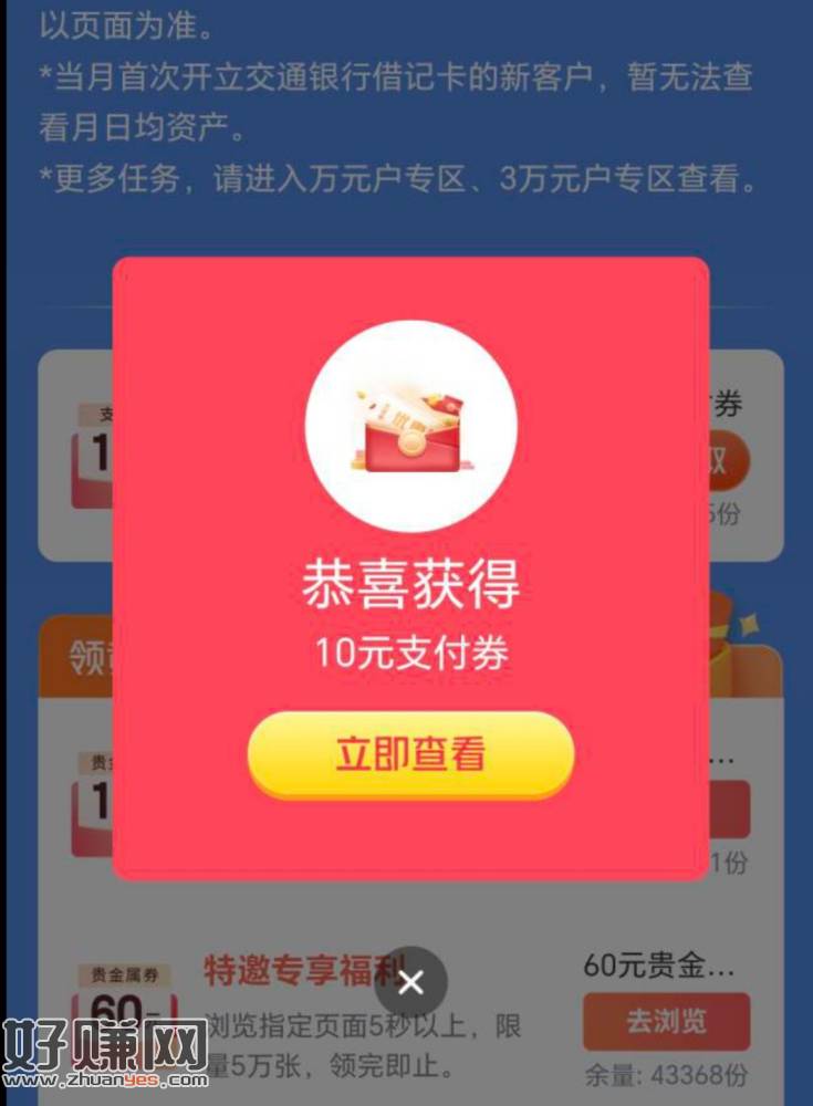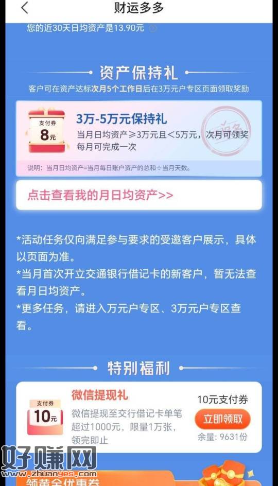 交通银行app搜索财运多多,页面下拉,二类卡提现1000失败也算完成,秒十毛