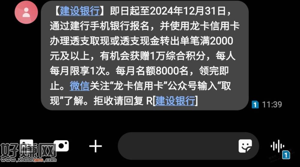 建行取现2000有机会得10000积分
