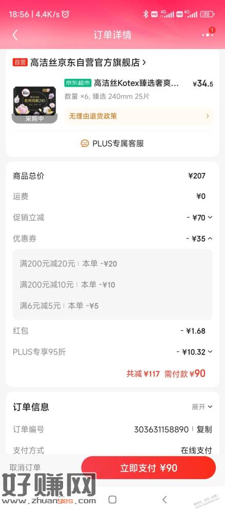 实付90,返60京东卡