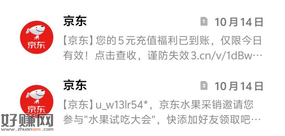 最近在京东超市买过水果的 去看看有没有短信 起初我以为是假的