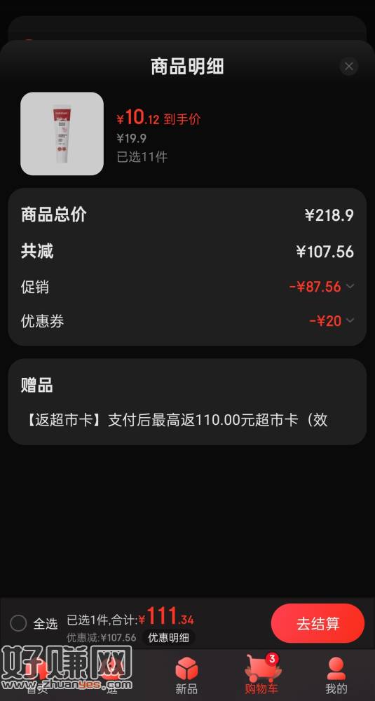 2个套娃牙膏 小的20g 大的90g 大的没有小的好用 拍11件实付111返110卡 然后用110卡继续套娃拍2次 注意实付一定要大于110(超市卡,京豆算实付)