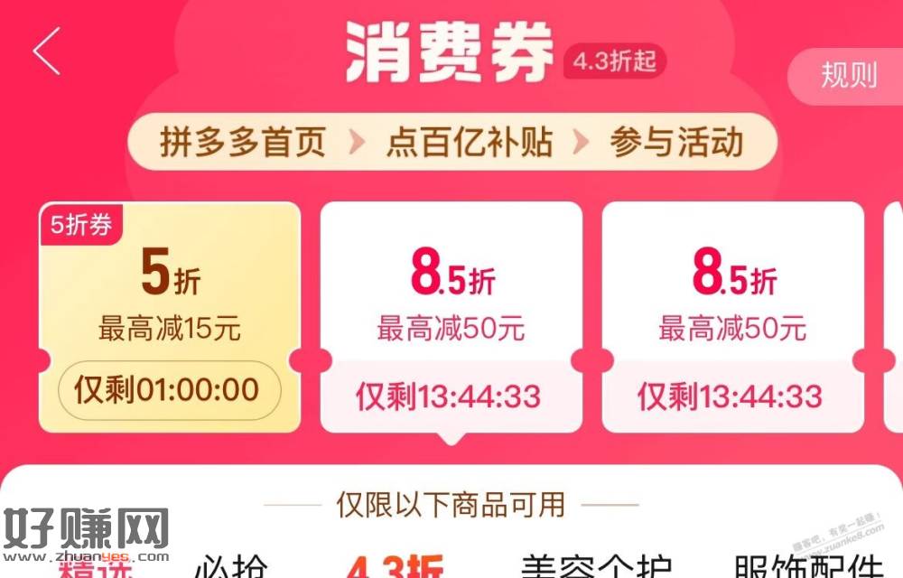 pdd 百亿补贴 4.3折消fei倦进入 部分号有5折倦哈
