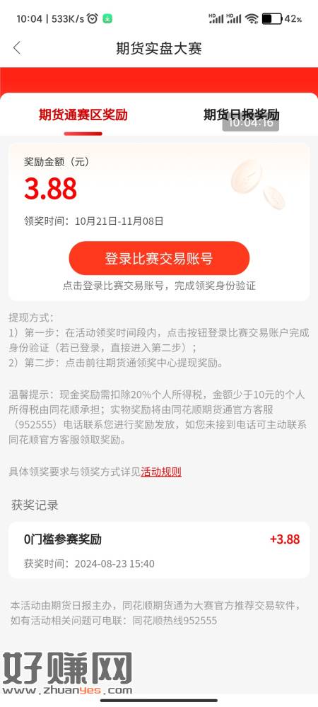 老妹我讲 同花顺期货通可以领奖了。老哥们,老姐们,冲啊啊啊