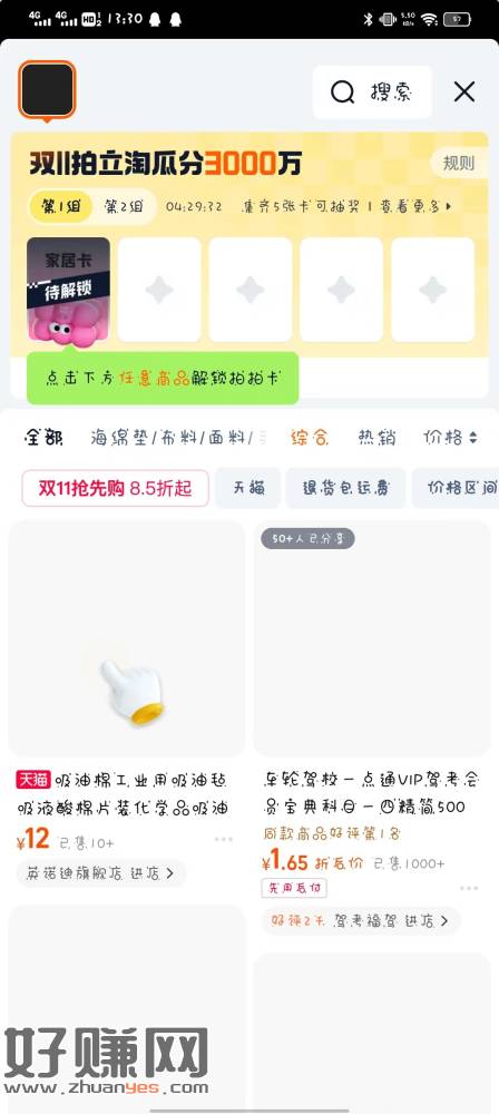 今年双十一拍拍乐集卡有一点点变化,拍完以后需要点击一个商品才能解锁