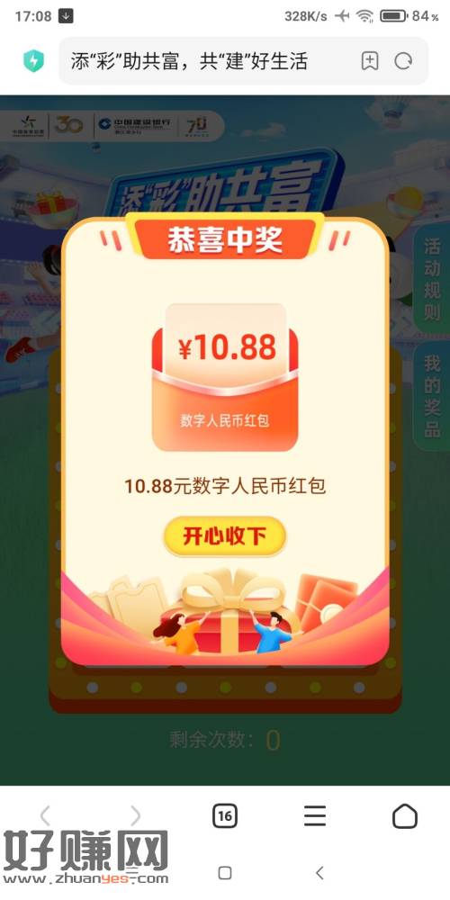 建.行 好运连连抽 有水哈