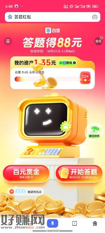 百度App搜答题红包左边答题全选八核,目前有20红包,提现不清楚