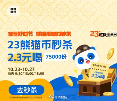 9:30开始,23熊猫币兑换2.3喝茶百道