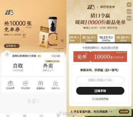 12点,古茗小程序,答题抢免单,口令预计:霜降